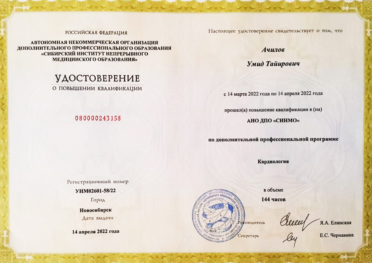 Опыт работы: в кардиологии 11 лет; УЗИ 5 лет.